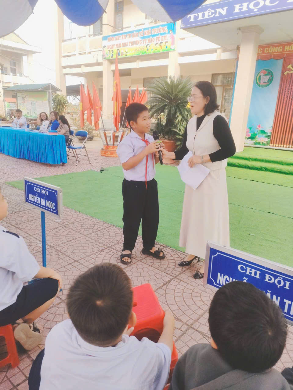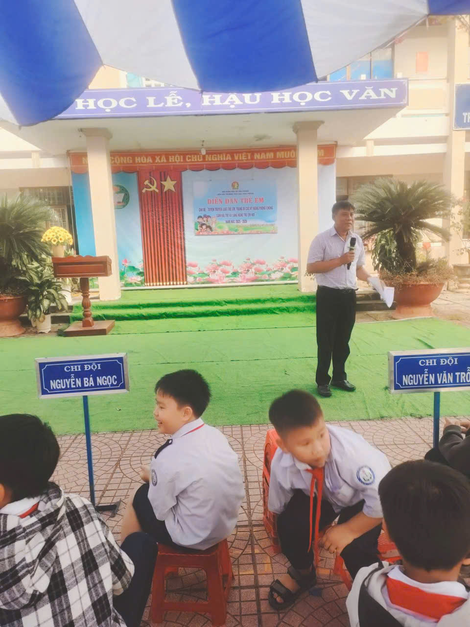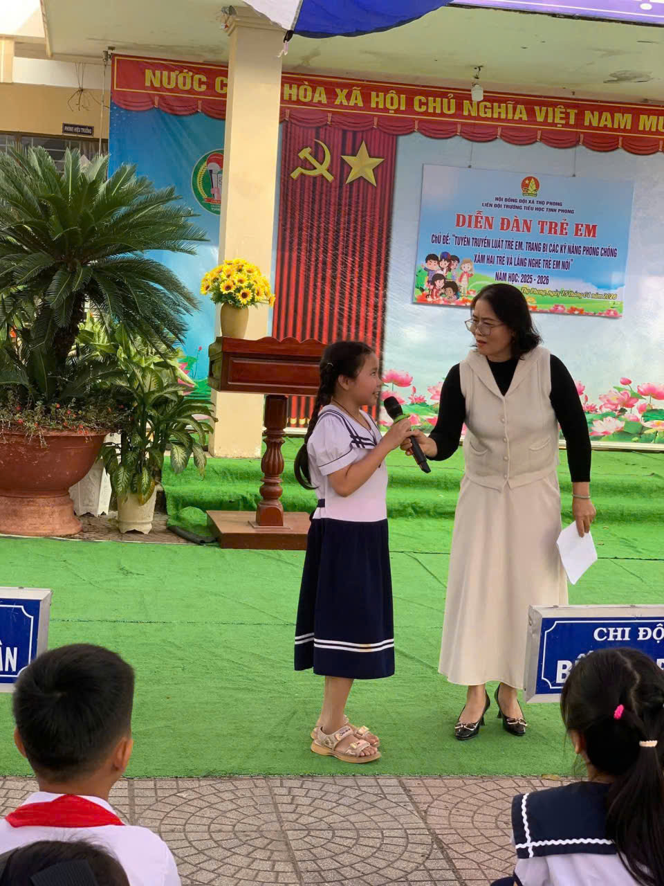 – Trong buổi “Diễn đàn trẻ em” tại trường đồng chí Nguyễn Thị Lợi – Đảng ủy viên, PCT UBMTTQVN xã, Chủ tịch Hội LHPN xã chia sẻ và tuyên truyền các kỹ năng phòng, chống xâm hại trẻ em; đồng chí Lê Thị Tuyến – Phó Bí thư Đoàn xã tuyên truyền Luật trẻ em đồng thời lắng nghe và trả lời các câu hỏi về Hội đồng đội xã.