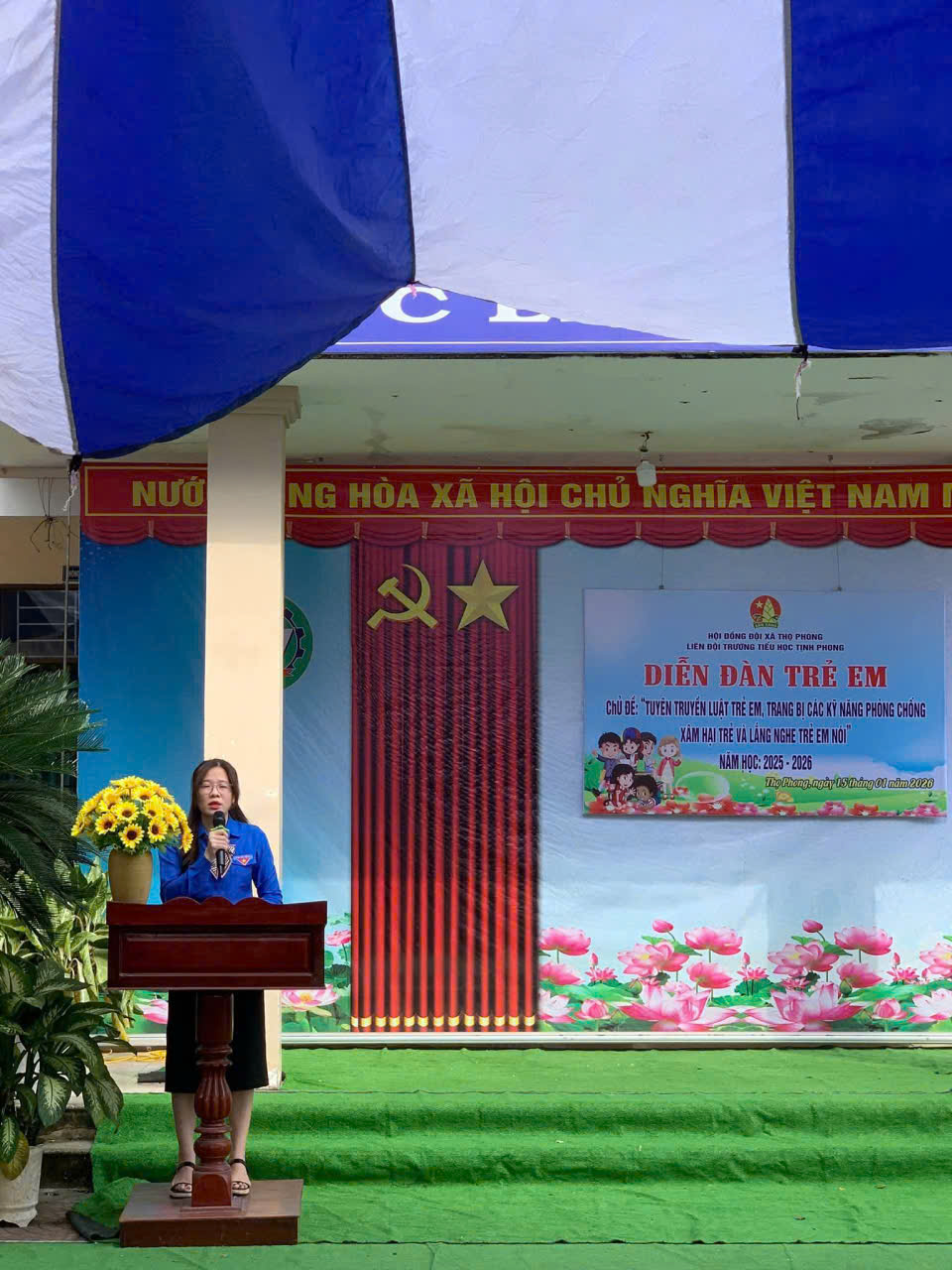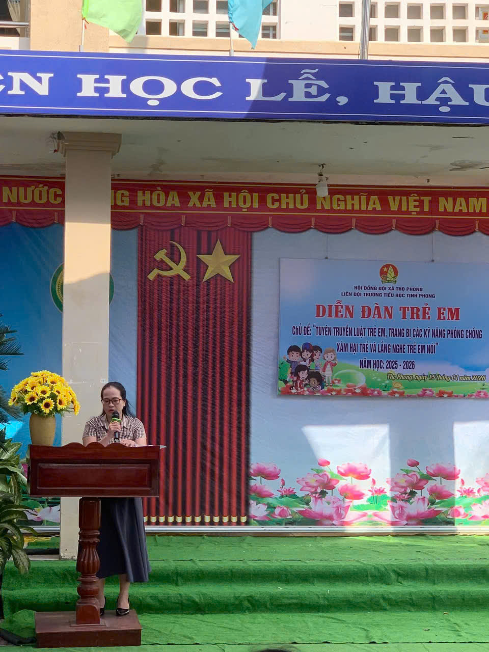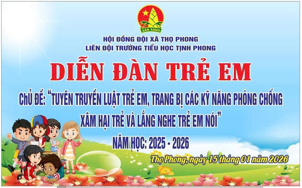 Thực hiện chương trình công tác đội và phong trào thiếu nhi, năm học 2025-2026. Được sự cho phép của BGH nhà trường, Liên đội trường phối hợp với Hội Liên hiệp Phụ nữ xã Thọ Phong cùng Đoàn Thanh niên xã phối hợp tổ chức buổi “Diễn đàn trẻ em” với chủ đề: Tuyên truyền Luật trẻ em, tuyên truyền các kỹ năng phòng, chống xâm hại trẻ em và lắng nghe trẻ em nói vào chiều ngày 15/01/2026.